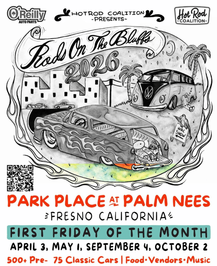 Classic cars, chrome, and serious throwback vibes take over Rods on the Bluff on April 3, 2026 from 5:00–8:00 PM at Park Place Shopping Center (Palm & Nees). This is the Valley’s largest automotive cruise night, featuring pre-1975 rides, food, vendors, and that golden-hour glow that hits just right. Whether you’re a car enthusiast or just here for the scene, it’s an easy, laid-back way to kick off your evening. No pre-registration needed, just pull up and enjoy. More info and details available here.